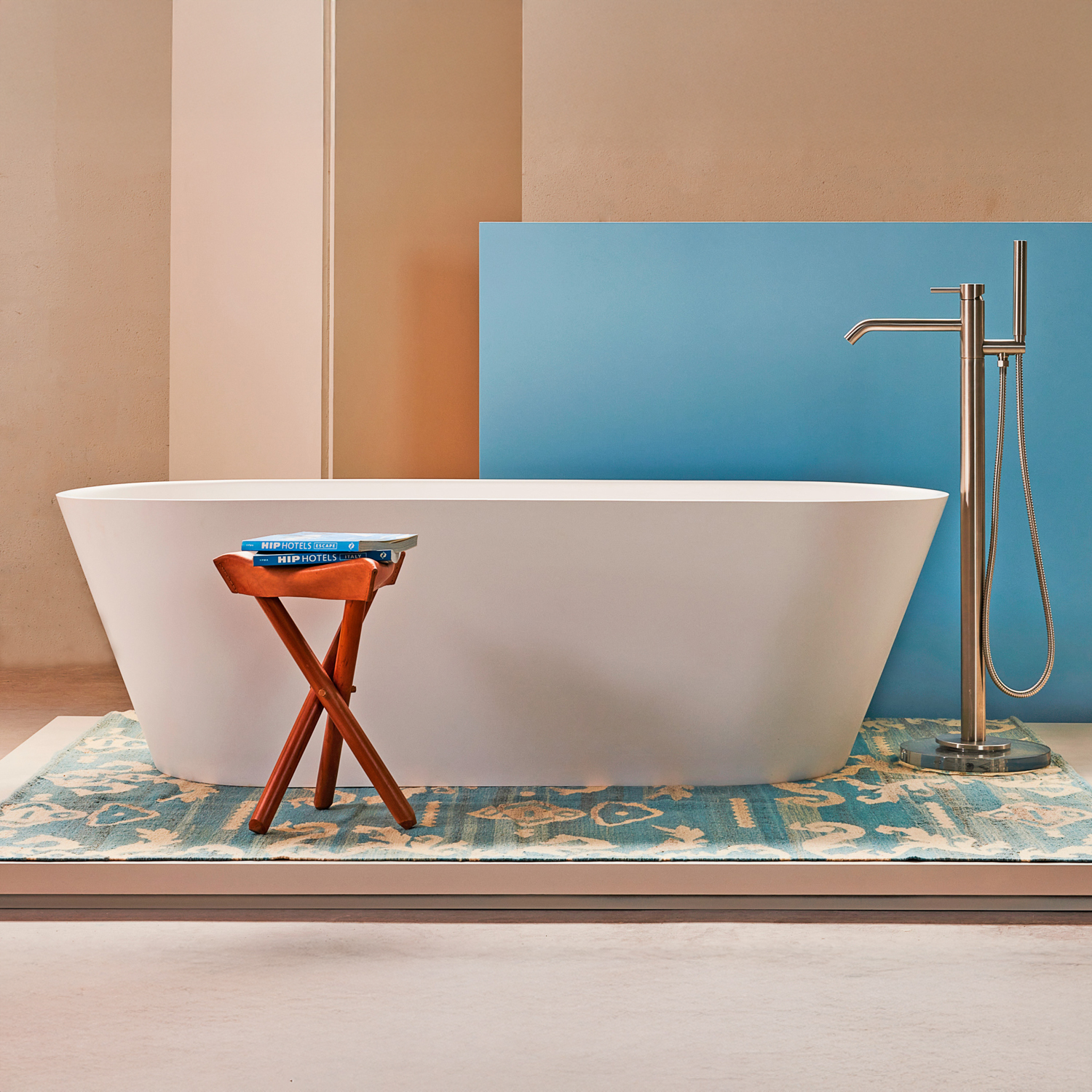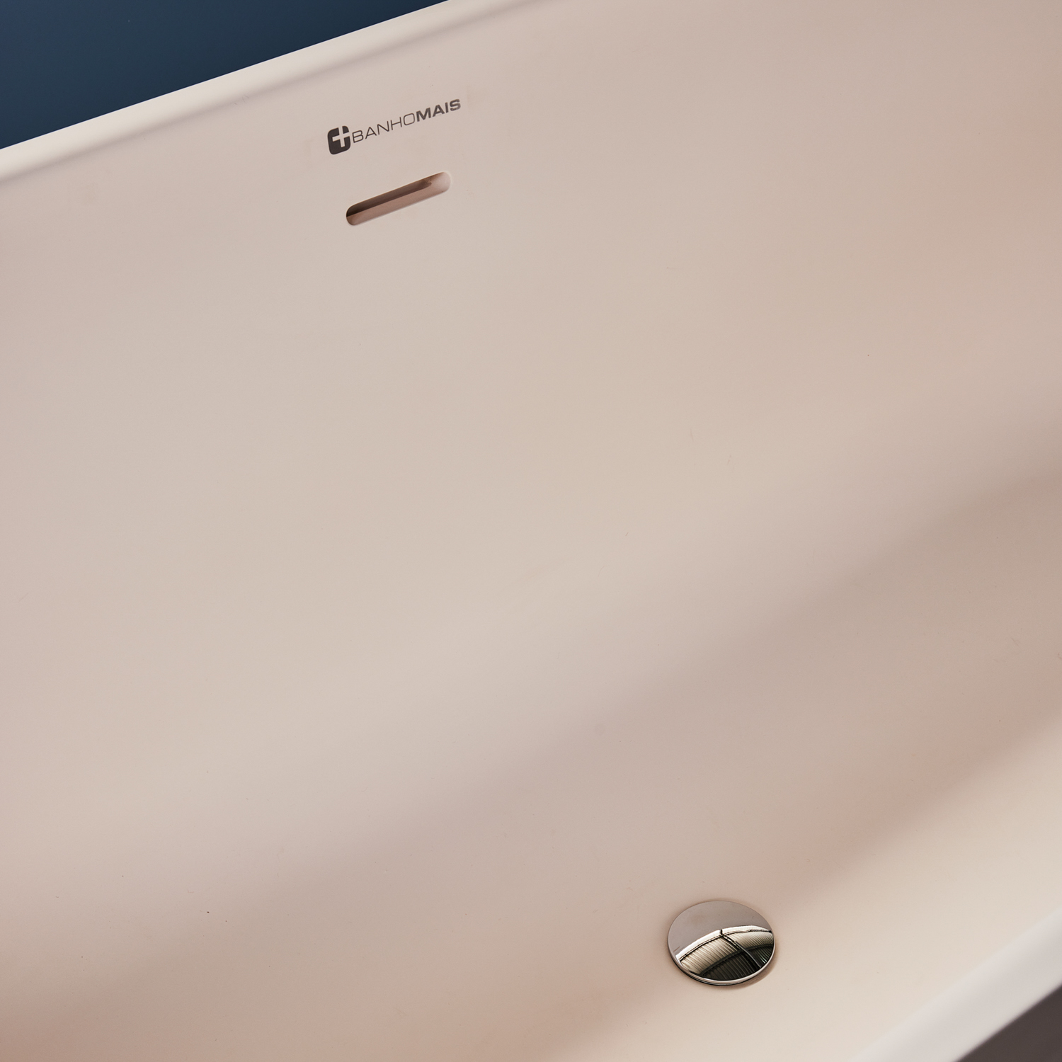 Linhas Ovais desenhadas de acordo com os conceitos de espaço e conforto. A Banheira de imersão 12 conta com um sistema de drenagem (conhecido como "ladrão") localizado na parte interna da banheira.