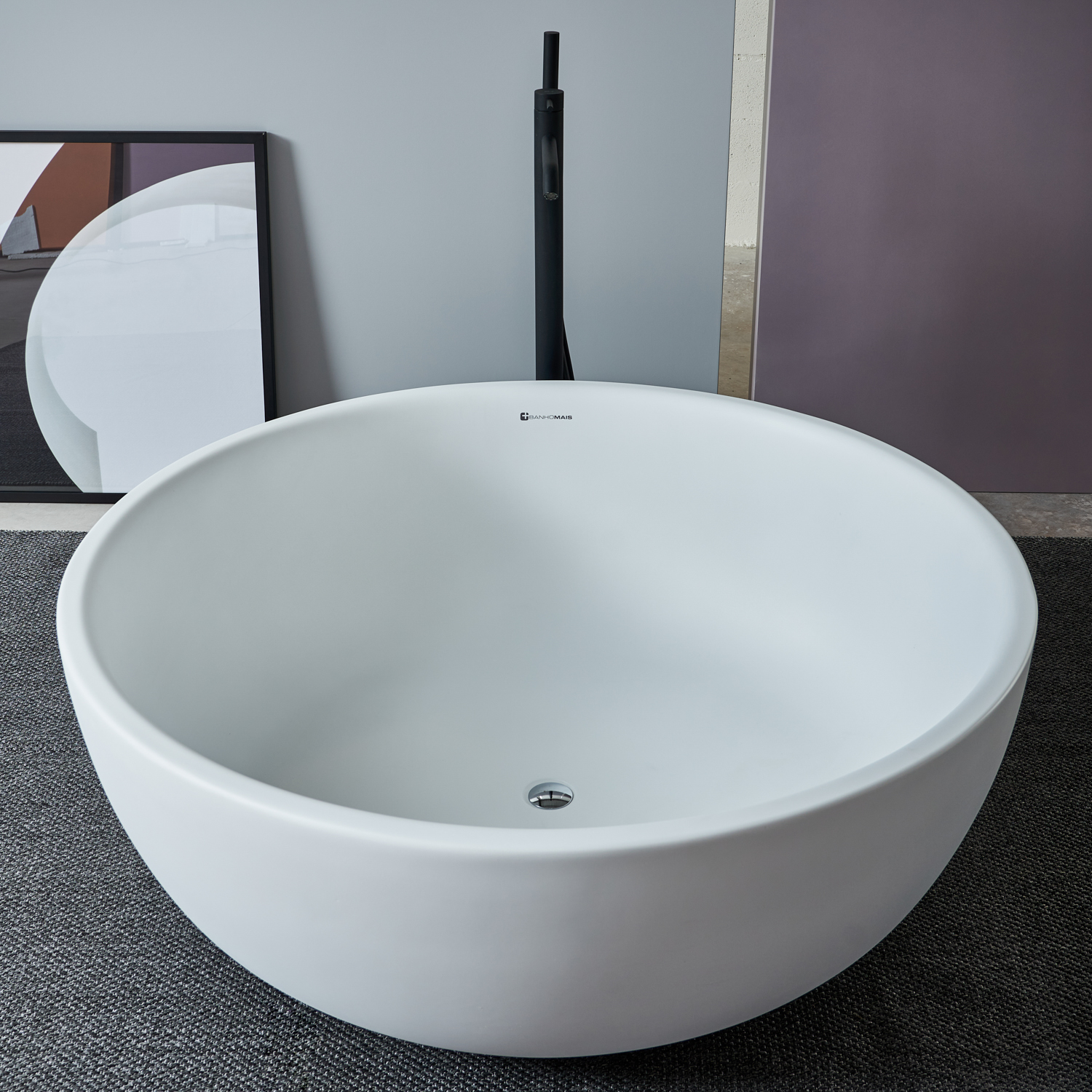 Banheira Redonda 21 (Diâmetro 131X46cm) Solid Surface Branco Fosco