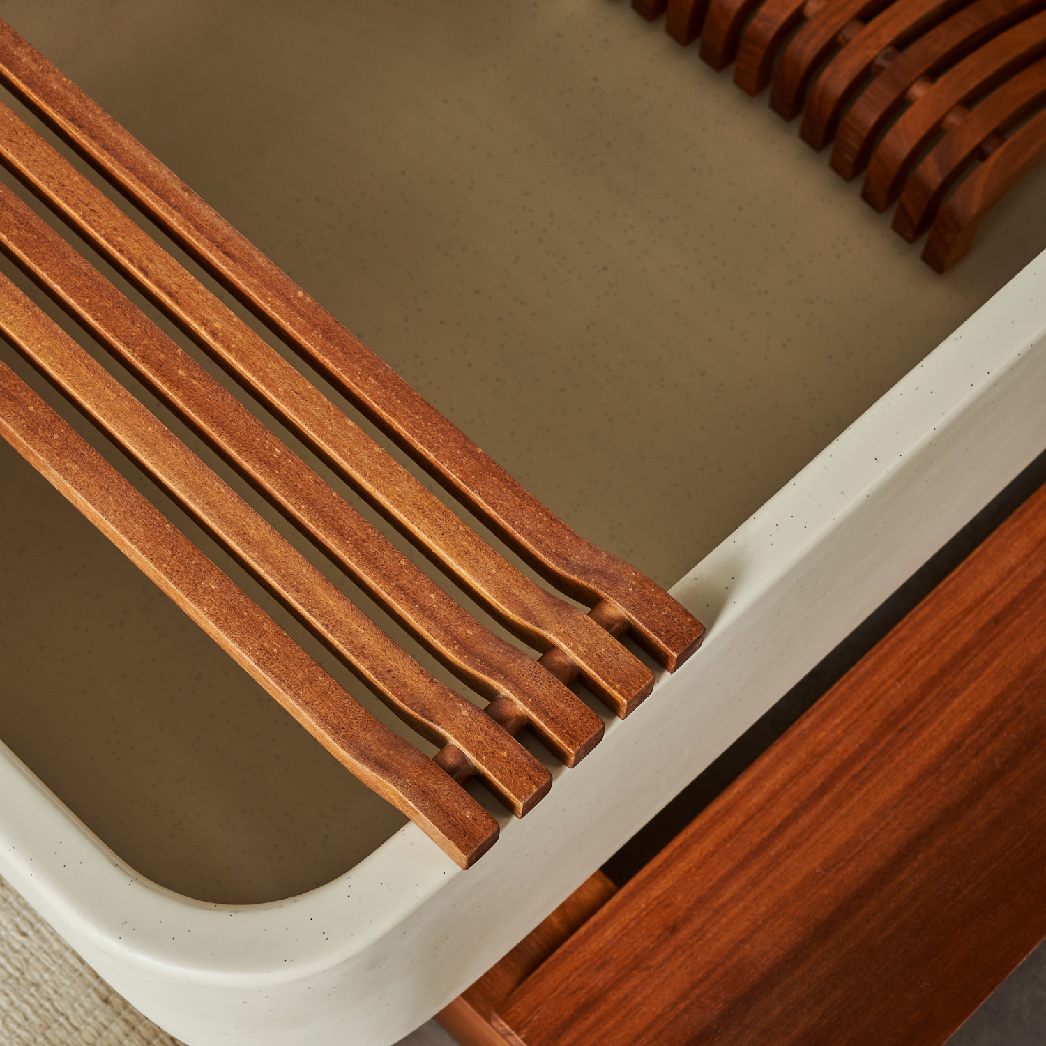 Materiais e Acabamentos disponíveis: Solid Surface e Moais Surface